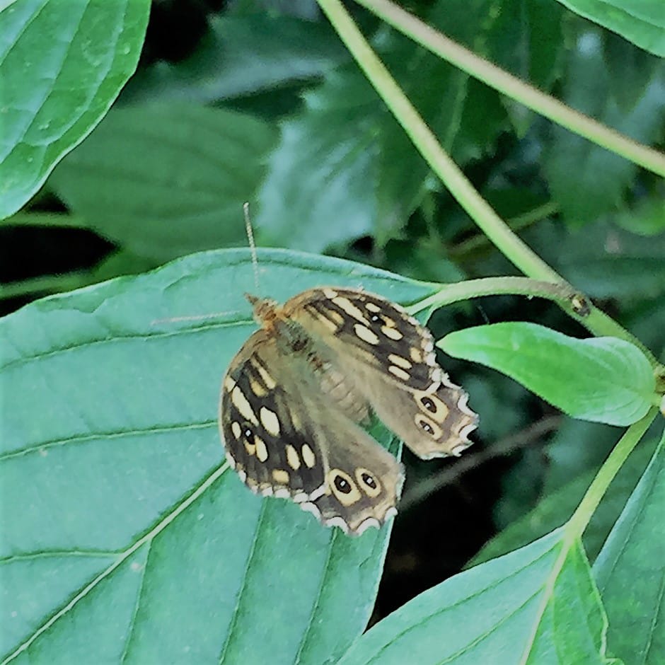 Er vliegen weer vlinders. Het bont zandoogje kwam vroeger alleen in bossen voor, maar is nu ook in tuinen te zien. De vlinder leeft drie weken.