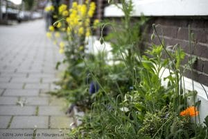 De gemeente spoort niet! Wij hadden een boomspiegeltuintje, zelf aangelegd, in de lente bloembolletjes, in de zomer viooltjes, en in het najaar groenblijvend spul. Hondeneigenaren vonden het geen probleem om hun Bello hun behoefte bij de violen te laten neerleggen, en de lieve medewerkers van de groenvoorziening ploegden met hun schoffel heerlijk het groen om. Want het verschil tussen planten en onkruid was voor deze medewerkers te moeilijk,zei hun voorman! Als iemand een geveltuin wil, geef dan toestemming, en laat ze het zelf aanpakken zoals ze het willen hebben, die paar tegels eruit wippen zal een liefhebber vast wel lukken. En als ze het beu zijn voelen ze zich tenminste vrij om de tegels terug te leggen. 1000 euro per tuintje….hebben ze misschien napijn van de griep op het gemeentehuis?