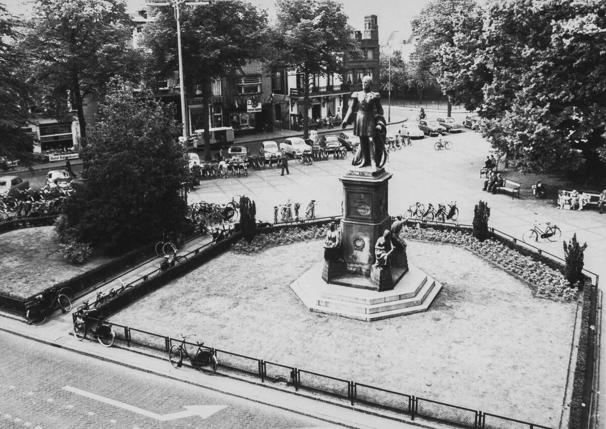 Destijds: 1957 standbeeld Willem II op de Heuvel John Geerts, donderdag 21 december 2023maandag 10 november 2025 Het standbeeld van Willem II in 1957, gefotografeerd vanuit Hotel Riche door persfotograaf Rien Siers. Het is een mooie zomerdag, en het valt vooral op dat er veel bomen op de Heuvel staan. Daarnaast kon er ook aan de rand geparkeerd worden en is rechts de befaamde lindeboom zichtbaar.Op 26 september 1924 onthulde Koningin Wilhelmina het standbeeld op deze plek op de Heuvel, nadat het door het gemeentebestuur van Tilburg was aangekocht omdat er in Den Haag een ruiterstandbeeld van Willem II was onthuld.Om onbekende redenen werd rond 1920 in Den Haag een comité opgericht dat ijverde voor een nieuw beeld, een kopie van het bronzen ruiterstandbeeld van de koning zoals dat op het Place Guillaume II stond in Luxemburg (Willem II was behalve koning van Nederland ook groothertog van Luxemburg).De maker van het oude standbeeld van Koning Willem II. heette Edouard François Georges, en was een leerling van de Belg Louis Royer. Hij kreeg een kleine 30 duizend gulden voor dit werk dat in 1854 op het Buitenhof in De Haag onthuld werd.De vier vrouwenfiguren op de hoeken van de hardstenen sokkel zijn zogenaamde allegorieën. Ze stellen voor: het koningschap (met kroon en scepter), de wetgeving (met de wet in de linker- en een pen in de rechterhand), de schoonheid (houdt een lauwerkrans omhoog), en de welvaart (met een hoorn des overvloeds en geldstukken). Op het voetstuk staan onder andere de plaatsen vermeld waar Willem II als militair overwinningen heeft behaald, waaronder Quatre-Bras, Waterloo, Hasselt en Leuven.Gerelateerde berichten:Onthulling standbeeld Willem II-er van de eeuw Jan van Roessel Komende zaterdag, 5 augustus 2017, wordt tijdens de Koningsdag (Open...Destijds: Project Boom op de Heuvel Mei 2009 op de Heuvel in Tilburg. Boom. Is het...Destijds: Korte Heuvel zonder Bellevue Het jaar 1965; we staan met onze rug naar de...Destijds: NCB bank op de hoek Heuvel Tuinstraat Vroege voorjaar 1963. Het kenmerkende gebouw van de Nederlandsche Credietbank...Destijds: 1939 Koning Willem II Kazerne De koning Willem II kazerne. We zien hier een parade,... Destijds... Rubrieken Edouard François GeorgesHeuvelkoningschapLouis RoyerPlace Guillaume IIRuiterstandbeeldschoonheidStandbeeld Willem IIwelvaartwetgeving