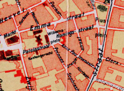 Destijds: 1965 Willemsplein en Koningswei John Geerts, donderdag 23 april 2026donderdag 23 april 2026 4 juli 1965: Fotograaf Ad de Bont nam deze foto van het oude Willemsplein. Veel herkenningspunten staan er niet op. Aan de rechterkant bevind zich het Paleis van Willem II en zien we het begin van de Paleisstraat. En niet zichtbaar aan de linkerkant liep de Koningsstraat en de Emmastraat. Wel zichtbaar is het inkijkje door de verdwenen Prinses Sophiastraat naar de Piusstraat. Op de afbeelding staan een witte Fiat 500 en een zwarte Citroën 2CV geparkeerd. Op de achtergrond zien we fabrieksgebouwen met schoorstenen.Stadsplattegrond uit 1934Het hele stuk heette ook wel de Koningswei. Dit gebied omvatte de locaties waar tegenwoordig het Koningsplein, de Paleisring en het Stadhuisplein liggen. De aanleg van deze wijk begon in 1866 als initiatief van Hendrik van Tulder op gronden uit de nalatenschap van koning Willem II. Het stedenbouwkundig ontwerp bestond uit straten die als stralen ontsprongen aan het ronde Willemsplein.De buurt ontwikkelde zich tot een volksbuurt die in de jaren zestig bijna volledig werd gesloopt. De sloop vond plaats onder bestuur van burgemeester Becht om ruimte te maken voor een nieuw stadshart en de Cityring.Na de sloop van de oorspronkelijke bebouwing verrees op deze plek onder andere het woongebouw de Katterug. Dit complex werd ontworpen door architect Wim van der Jagt volgens principes van architectenbureau Van den Broek en Bakema. Het gebouw kenmerkt zich door een trapsgewijze vorm en een poort over de Paleisring. Gerelateerde berichten:Destijds: 1962 Koningsstraat en Koningswei Deze kleurenfoto van fotograaf Ad de Bont uit 1962, die...Destijds: Veteranendag Willemsplein 31 Oktober 2015. Veteranendag op het Willemsplein...Destijds: 1936 Willemsplein Een speciale luchtfoto van KLM-Aerocarto. Dit is een zeldzame foto die...De eerste schetsen van het 15-jarenplan Koningswei Een groen Koningsplein met zes woontorens van 40 tot 70...Ontwerp om Koningsplein te veranderen in Koningswei In april 2021 presenteerden de gemeente Tilburg, TBV Wonen (eigenaar... Destijds... DestijdsKoningswei