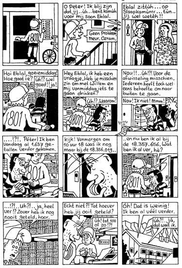 Eblal krijgt bezoek (I) Peter Timmermans, maandag 16 september 2013maandag 9 september 2013 De ‘Gapscene’, ofwel Garmisch-Partenkirchen scene, bestaat inmiddels uit een zevental albums. Vijf daarvan geeft Peter Timmermans sinds begin 2012 in eigen beheer uit. In de Zuidduitse plaats Garmisch-Partenkirchen, alwaar hij als tiener al graag op vakantie ging, heeft Peter tussen 2000 en 2004 gewoond.Via het strippersonage ‘Eetje Eerlijk’ , waarvan in 2010 het eerste boekje verscheen, hebben Peter’s geesteskinderen Peter Pet, Eblal, Frau Stangl en Helmut inmiddels hun weg richting het Midden-Brabantse land gevonden. Hierdoor is de ‘Gapscene’ eigenlijk ook wel een beetje een ‘Tilboscene’ geworden. Drie bundels van Peter Timmermans zijn te koop bij boekhandel Livius voor 6 euro. Het gaat om drie titels: ‘Festival Numerique’, ‘Stangl’s klokje’ en ‘Op avontuur in het Hart van Brabant’Geen gerelateerde berichten. GAPscene bezoekeblalGAPscenePeter