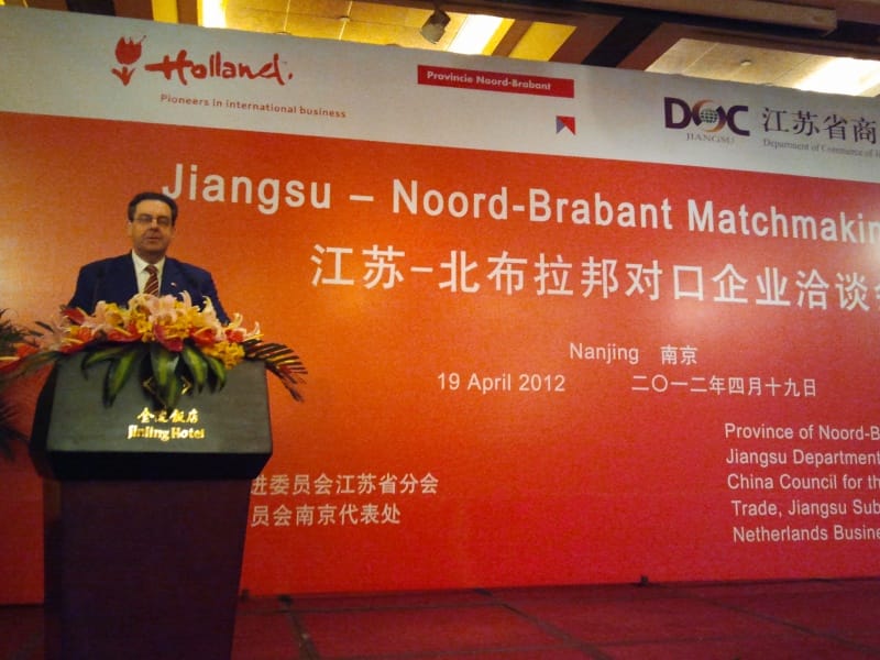 Erik de Ridder: Handelsmissie Changzhou – deel 5 Gastauteur, vrijdag 20 april 2012zaterdag 1 februari 2014 Wethouder Erik de RidderDe gemeente Tilburg is op handelsmissie naar China. Van 14 tot en met 22 april bezoeken burgemeester Peter Noordanus, wethouder Erik de Ridder, een tiental Tilburgse ondernemers en diverse culturele- en onderwijsinstellingen de Tilburgse zusterstad Changzhou. Wethouder Erik de Ridder houdt een overzicht bij van zijn ervaringen in Changzhou.Gisteravond laat gearriveerd in Nanjing. We zitten in het Jinling hotel, hartje stad. Het eerste hotel van Nanjing dat open stond voor buitenlandse (zaken)reizigers, zo werd ons verteld in de bus. Het is een mooi hotel, wat ouderwets voor Chinese begrippen. De 5-sterren hotels schieten de laatste jaren als paddestoelen uit de grond…Bert Pauli opent matchmaking deelnemers missie en bedrijven en JiangsuVanochtend matchmaking bijeenkomst. Aftrap door gedeputeerde Bert Pauli, de deputy director-general van het Department of Commerce van Jiangsu en de directeur van de Kamer van Koophandel Brabant Henk Rosman. Een energierijke sessie volgt, met 100+ Chinese ondernemers en een stuk of 20 Brabantse bedrijven. Benieuwd naar de resultaten! Zelf alleen bij de aftrap geweest, want ik wil niemand voor de voeten lopen bij het “matchmaken”.Daarna bijgepraat met een aantal Tilburgse delegatieleden en lunch met burgemeester, Henk Roskam en Jan Pelle (directeur BOM)Opening Van Gogh experience NanjingIn de middag was een mooie ceremonie, waarbij een Van Gogh – tijdeljk – werd ondergebracht in het museum van Nanjing. Een mooi moment, en een mooie bevestiging van de relatie tussen de provincies.In de avonduren was vervolgens een heus koninginnedagfeest in het Van Gogh Friendship park te Nanjing, waar een full-size molen (helaas, geen foto…) en een Brabantse boerderij staan. Een gezellig feest met de meegereisde delegatieleden en hun Chinese gasten. Brabantse gezelligheid in Nanjing. Het einde van een mooie dag.Eerder verschenen in deze reeks:Deel 1 – maandag 16 aprilDeel 2 – dinsdag 17 aprilDeel 3 – woensdag 18 aprilDeel 4 – donderdag 19 aprilGeen gerelateerde berichten. Cultuur Economie Gastbijdrage Bert PauliChangzhouChinaErik de RidderHenk RoskamNanjingVan Gogh Friendship park