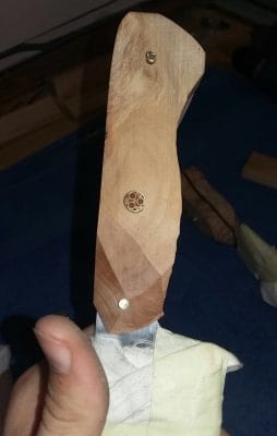Wat ik niet wist, is dat we een heuse Tilburgse messenmaker hebben: JC. Op de foto mijn cadeaumes, gemaakt van Böhler N690 staal met een handvat van… Zilverlinde hout.