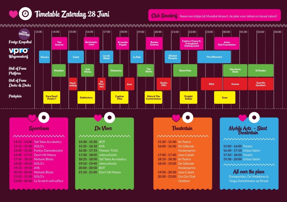 Line-up Festival Mundial compleet! Roland Samuëls, vrijdag 9 mei 2014vrijdag 9 mei 2014 Met meer dan 90 acts uit 35 landen is het programma van Festival Mundial compleet! In de spannende loodsen en kleine zaaltjes van de industriële Spoorzone presenteert Festival Mundial een superdiverse line-up vol talent uit alle windstreken! De diversiteit en kwaliteit van het programma is verder uitgebalanceerd. Het aanbod van talent is ongekend en Festival Mundial is uitgegroeid tot een place to be voor artiesten met een nieuw geluid.Mundial tipt: Azalai is de eeuwenoude Karavaan die door de Sahara trekt. Topmuzikanten uit Senegal, Gambia, Ghana, Nederland en België spelen met weergaloze energie en opzwepende ritmes een set gebaseerd op de muziek uit de Sahara en omringende gebieden. Afrikaanse highlifegrooves, Saharablues maar ook onversneden en onweerstaanbare Senegalese Mblax (spreek uit Me-balag). Voor ieder optreden wordt er een verbinding gezocht met de locatie waar Azalai Project optreedt, door een special guest uit te nodigen. Op Festival Mundial zal dit een van de beste trompettisten van de wereld zijn; niemand minder dan Eric Vloeimans! Een van de laatste spraakmakende toevoegingen is BOT speelt RAMKOERS. RAMKOERS is een voorstelling van muziektheatergroep BOT, regisseur Vincent de Rooij (Dogtroep) en productiehuis Oost-Nederland.Wie iets heeft, heeft iets te verliezen. Maar wie geen risico neemt, komt ook niet vooruit. Daarom smijt BOT alle zekerheden overboord. Het viertal tuigt zijn rammelend instrumentarium op en bouwt vol overgave aan een eigen wereld. In de muziektheatervoorstelling RAMKOERS verzamelt BOT de brokstukken van een samenleving die vastgelopen lijkt geraakt en toont ons vermogen om daar iets nieuws uit op te bouwen. Met schurende humor, klinkende machinerie, fysieke arbeid en breekbare songteksten trekt het viertal je mee in hun strijdlustige overtuiging dat het ook anders kan. Verwacht een eigenzinnige voorstelling met grote machines en kleine liedjes. Caballos de Menorca, oftewel Paarden uit Menorca geeft een blik op de dierlijke natuur van paarden en onthult het belang van traditie in een hedendaagse presentatie. In de feesten van Menorca op het gelijknamige Spaanse eiland, waren paarden een symbolisch onderdeel. Dit unieke staaltje straattheater geeft een hedendaagse representatie van deze traditionele feesten en laat een onuitwisbare indruk achter.Eén van de spraakmakers van dit jaar is met zekerheid prijswinnende trompettist Ibrahim Maalouf. Met een speciaal door zijn vader gebouwde trompet produceert hij een kenmerkend Arabisch geluid en vermengt dit met jazz, metal, pop en klassieke invloeden. Grijp je kans en kom genieten van deze fantastische trompettist want hij is dit jaar in Nederland alleen te zien op Festival Mundial en North Sea Jazz.Neem Fanfara Tirana, één van de leukste fanfarebands uit de Balkan en voeg daar de TransGlobal Underground aan toe. Een Britse band wiens muziek zich het best laat omschrijven als een caleidoscopische trip door rituelen en geheimen. Wat je dan krijgt is het volgende: een dynamische, crossculturele performance vol muziek gebaseerd op muzikale schatten uit de Balkan. Met één been in de geschiedenis en de blik op de toekomst vertellen de melodieën en teksten nieuwe sprookjes. Ze zorgen voor verbeeldingskracht die ons het leven, de liefde en solidariteit laat vieren. In voor een inspirerende ervaring? Dan mag je deze show niet missen.Festival Mundial is één van de kleurrijkste festivals van Nederland en vindt plaats op 27, 28 & 29 juni 2014 in de Spoorzone Tilburg. Een 3-dagen kaartje voor Festival Mundial kost € 30,-, 2-dagen Festival Mundial kost € 27,50 en je betaalt € 17,50 euro voor één dag. Drie overnachtingen op de Mundial City Camping kost € 37,50 p.p. De kaartverkoop is inmiddels gestart. Ben je van plan om naar Festival Mundial te komen, koop dan op tijd je kaarten. Er is een beperkte capaciteit en Festival Mundial 2013 was volledig uitverkocht. Kijk voor meer informatie op www.festivalmundial.nl Geen gerelateerde berichten. Evenement Alamaailman VasaratAresAsian Dub FoundationAzalai projectBaciamolemaniBassekou Kouyate & Ngoni BaBatucada Sound MachineBomba EstéreoBoom PamBroederliefdeCapitan TifusCoelyDe PioniersDen Sorte SkoleDilated PeoplesDJ KadeeDon’t Hit MamaDub IncDubfactoryEric VloeimansFanfara Tirana ft. Transglobal UndergroundFestival MundialGomesGoseGuerilla SpeakerzIbrahim MaaloufJaakko ToivonenJambinaiJelena KosticJoan CatalàJoshua TrebiKali MutsaKnarsetandKosha DillzKovacsKraantje PappieLa RaízLinkobanLos de AbajoLucia MarthasMames BabegenushMaydienMeta and the CornerstonesMitúMongooseNana en NeelNishant BholaOdezennePalenke SoultribePia MeuthenProject RakijaPure!Soul!Power!RamkoersRoCola BacalaoRosario SmowingSKIP&DIESó TeatroSOLO’sSöndörgöSoviet SupremstadscampingTall Tales AcrobaticsThe Black Marble SelectionThe JillionaireThe SexicanThe SkintsTim ArisuTUIGTurtle IslandTutatisUrban SafariVintage Trouble
