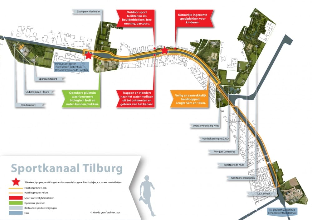 Open dag Sportkanaal Tilburg Roland Samuëls, woensdag 7 oktober 2015donderdag 11 april 2019 De sportverenigingen die betrokken zijn bij het initiatief Sportkanaal Tilburg houden een open dag op zaterdag 10 oktober tussen 10:00 en 16:00 uur. De verenigingen zitten langs het WilhelminakanaalSportkanaal Tilburg is een initiatief van architecte Kim de Greef. Zij bedacht een idee om van het Wilhelminakanaal een plek te maken waar mensen kunnen sporten, bewegen en elkaar ontmoeten. De gemeente werkt mee aan het initiatief. De sportverenigingen langs het kanaal zijn belangrijk voor het Sportkanaal. Doordat ze samenwerken, versterken ze elkaar. Deelnemende clubs zijn onder meer Zigo, Noad, Longa, SVG, Omnivereniging Were Di, de Tilburgse open roeivereniging en Vidar. Ook zorgcentrum Hazelaar en meerdere wijkraden werken aan het idee mee. In plaats van een barrière te vormen tussen het centrum en Noord en Centrum-Zuid krijgt het kanaal een aantrekkelijke functie. Samen met sportverenigingen, wijkraden en zorginstanties langs het kanaal wordt het idee voor het Sportkanaal verder ontwikkeld.Kim de Greef: “Ik had nooit gedacht dat het zo goed zou lopen. Van begin af aan heb ik veel positieve reacties ontvangen op het idee om van het kanaal een Sportkanaal te maken. De gemeente ondersteunde het initiatief, zodat ik de ruimte kreeg om draagvlak te krijgen voor het idee en het verder te ontwikkelen. En nu zijn we samen met de sportverenigingen de eerste concrete actie aan het voorbereiden. Het uiteindelijke doel is het kanaal zo in te richten dat het uitnodigt tot sport, spel, bewegen en elkaar ontmoeten.”Geen gerelateerde berichten. Evenement Sport Wonen en wijken de Tilburgse open roeiverenigingKim de GreefLongaNOADOmnivereniging Were DiSportkanaal TilburgSVGVidarZIGO