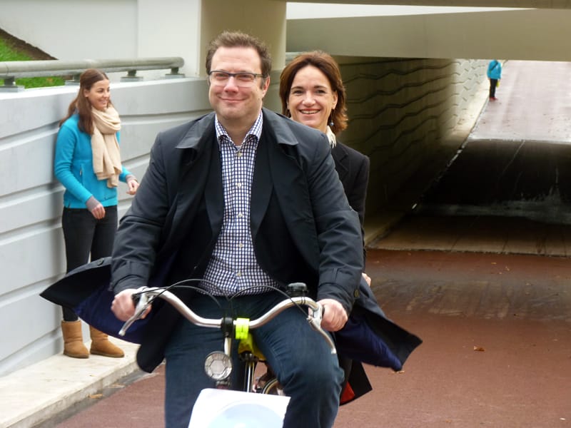 Kèkt um gaon, onze asfaltwethouder, voor de fiets dan… Eindelijk open, goed nieuws voor die honderden scholieren. En voor fietsers richting en vanaf de Reeshofdijk.