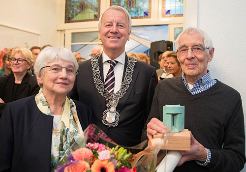 Tilburg Trofee voor Anneke en Wil van Dusseldorp Roland Samuëls, maandag 19 december 2016maandag 19 december 2016 Anneke en Wil van Dusseldorp van Studio Van Dusseldorp hebben zondag 18 december 2016 de Tilburg Trofee ontvangen uit handen van burgemeester Peter Noordanus.Ze kregen deze Trofee vanwege de belangrijke rol die zij jarenlang met Studio Van Dusseldorp hebben vervuld voor de culturele sector in de stad. Peter Noordanus reikte de Tilburg Trofee uit tijdens de opening van de laatste tentoonstelling La Grande Finale bij Studio van Dusseldorp aan het Wilhelminapark 110 in Tilburg.De heer W.G.M.D. (Wil) (80) en mevrouw A.M.E. (Anneke) (76) van Dusseldorp zijn eigenaar van Studio Van Dusseldorp aan het Wilhelminapark, een galerie voor internationale hedendaagse kunst. Studio Van Dusseldorp is opgericht in 1966 en sinds 2001 bekend als galerie. Anneke en Wil hebben met hun galerie vele kunstenaars uit Tilburg en daarbuiten een podium kunnen bieden. Door vast te houden aan de consequent gekozen groep kunstenaars is de galerie de afgelopen jaren stevig verankerd geraakt in het landschap van Nederlandse galeries voor beeldende kunst. Bezoekers hebben 15 jaar lang kunnen genieten van de kunst in deze bijzondere galerie. Wil van Dusseldorp, die onlangs tachtig jaar is geworden, heeft samen met zijn vrouw besloten om de galerie te sluiten.Gerelateerde berichten:Tilburg Trofee voor Guus Bakker – Tilburg Trappers Guus Bakker heeft de Tilburg Trofee van de gemeente Tilburg...Tilburg Trofee voor Loek Klaassen De heer Loek Klaassen uit Berkel-Enschot heeft op maandag 8...Tilburg Trofee voor Jeanny Michielsen Jeanny Michielsen ontving op dinsdag 10 mei de Tilburg Trofee...Ton Evers krijgt Tilburg Trofee voor idee buurtpreventie Ton Evers ontving de Tilburg Trofee vanwege zijn grote bijdrage...PvdA Tilburg presenteert plan ‘Brigade Tilburg Werkt’ Op vrijdag 9 december heeft fractievoorzitter Yusuf Celik van de... Bedrijven en ondernemers Burgerkracht Cultuur Werk Anneke van DusseldorpBurgemeester Peter NoordanusStudio Van DusseldorpTilburg TrofeeWil van Dusseldorp